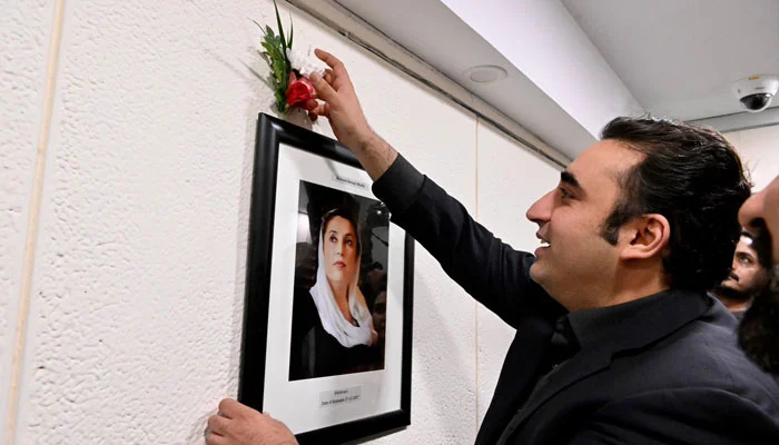 اسلام آباد چیئرمین پیپلزپارٹی بلاول بھٹو زرداری نے وفاقی وزارت داخلہ کا دورہ کیا اور دیوار شہدا پر اپنی والدہ اور سابق وزیراعظم محترمہ بینظیر بھٹو شہیدکی تصویر لگائی۔