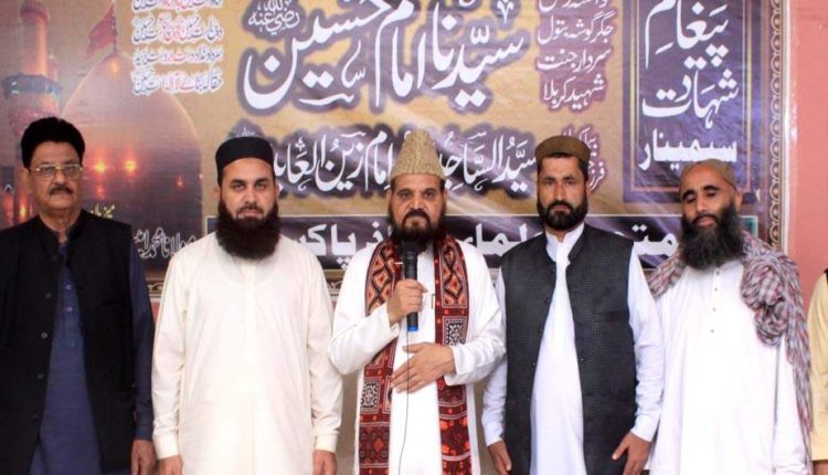 پاک نیوز، متحدہ علماء محاذ پاکستان کے بانی سربراہ مولانا محمد امین انصاری کی دعوت پر کراچی کے صدر مفتی محمد داؤد کی زیر صدارت مرکزی سیکریٹریٹ گلشن اقبال میں 18ویں سالانہ پیغام شہادت نواسہ رسولؐ سیدنا امام حسینؑ و امام زین العابدینؑ سیمینار کا انعقاد کیا گیا۔سیمینار سے مختلف مسالک و مذاہب کے جید علماء مشائخ و ذاکرین ورہنماؤں سمیت مولانا انتظارالحق تھانوی، سید محمد خرم شاہ جیلانی، مولانا سلیم اللہ خان ترک، علامہ علی سرکار نقوی و دیگر نے خطاب کرتے ہوئے کہا ہے کہ شہادت امام حسینؑ استعمار کے خلاف وحدت و بیداری کا درس دیتی ہے، امام حسینؑ نے دین کی سربلندی کیلئے خاندان نبوت کی لازوال عظیم قربانی دی، آج دین کے نام پر تکفیریت، فرقہ پرستی، دہشت گردی،عصبیت، منافرت کو فروغ دیا جارہا ہے، علماء و ذاکرین محراب و منبر پر مسالک کے بجائے دین اسلام، اہل بیت اطہارؑ، اصحاب رسولؐ کی سیرت و تعلیم کی تبلیغ کریں۔