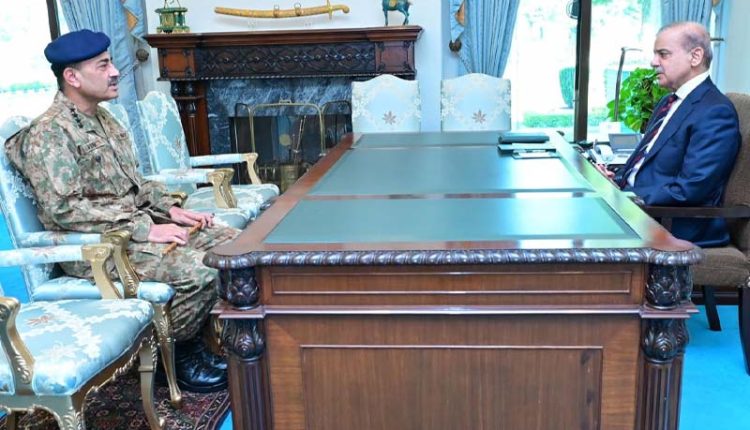 آرمی چیف جنرل سید عاصم منیر نے وزیراعظم میاں محمد شہباز شریف سے پی ایم ہاؤس میں ملاقات کی، جس میں انہوں نے وزیراعظم کو منصب سنبھالنے پر مبارک باد دی اور اپنی نیک خواہشات کا اظہار کیا۔