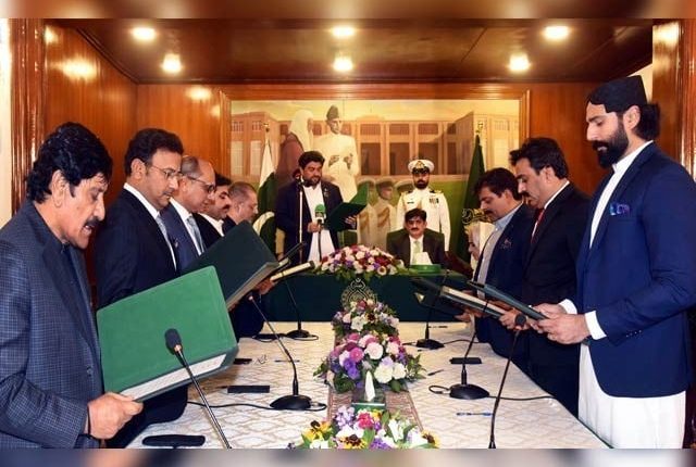 سندھ کابینہ کی تقریب حلف برداری گورنر ہاؤس میں ہوئی جہاں گورنر سندھ کامران ٹیسوری نے 9 وزراء سے حلف لیا۔