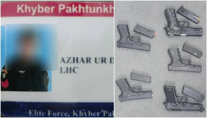 ڈپٹی سپرنٹنڈنٹ آف پولیس (ڈی ایس پی) راجہ عمر خطاب کے مطابق سی ٹی ڈی انٹیلی جنس ونگ نے کے ایم سی اسپورٹس کمپلیکس کے قریب کارروائی کی، ملزم پولیس اہلکار اظہرالدین کے پاس موجود اسکول بیگ سے چھوٹے ہتھیار برآمد ہوئے۔