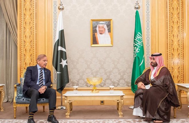 وزیراعظم شہباز شریف نے سعودی ولی عہد شہزادہ محمد بن سلمان سے ملاقات کی جس میں دونوں رہنماؤں نے مختلف شعبوں میں تعاون کو مزید بڑھانے پر اتفاق کیا۔