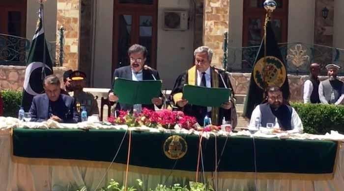 نئے گورنر بلوچستان شیخ جعفر مندوخیل کی تقریب حلف برداری گورنر ہاؤس کوئٹہ میں ہوئی جہاں چیف جسٹس بلوچستان ہائیکورٹ جسٹس محمد ہاشم کاکڑ نے ان سے حلف لیا۔
