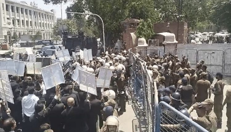 احتجاج کے دوران وکلا نے رکاوٹیں ہٹا کر ہائیکورٹ کے اندر جانے کی کوشش جس پر پنجاب پولیس کے اہلکاروں نے وکلا کو منتشر کرنے کیلئے لاٹھی چارج اور شیلنگ کی، پولیس نے وکلا مظاہرین کےخلاف واٹرکینن کا استعمال بھی کیا۔