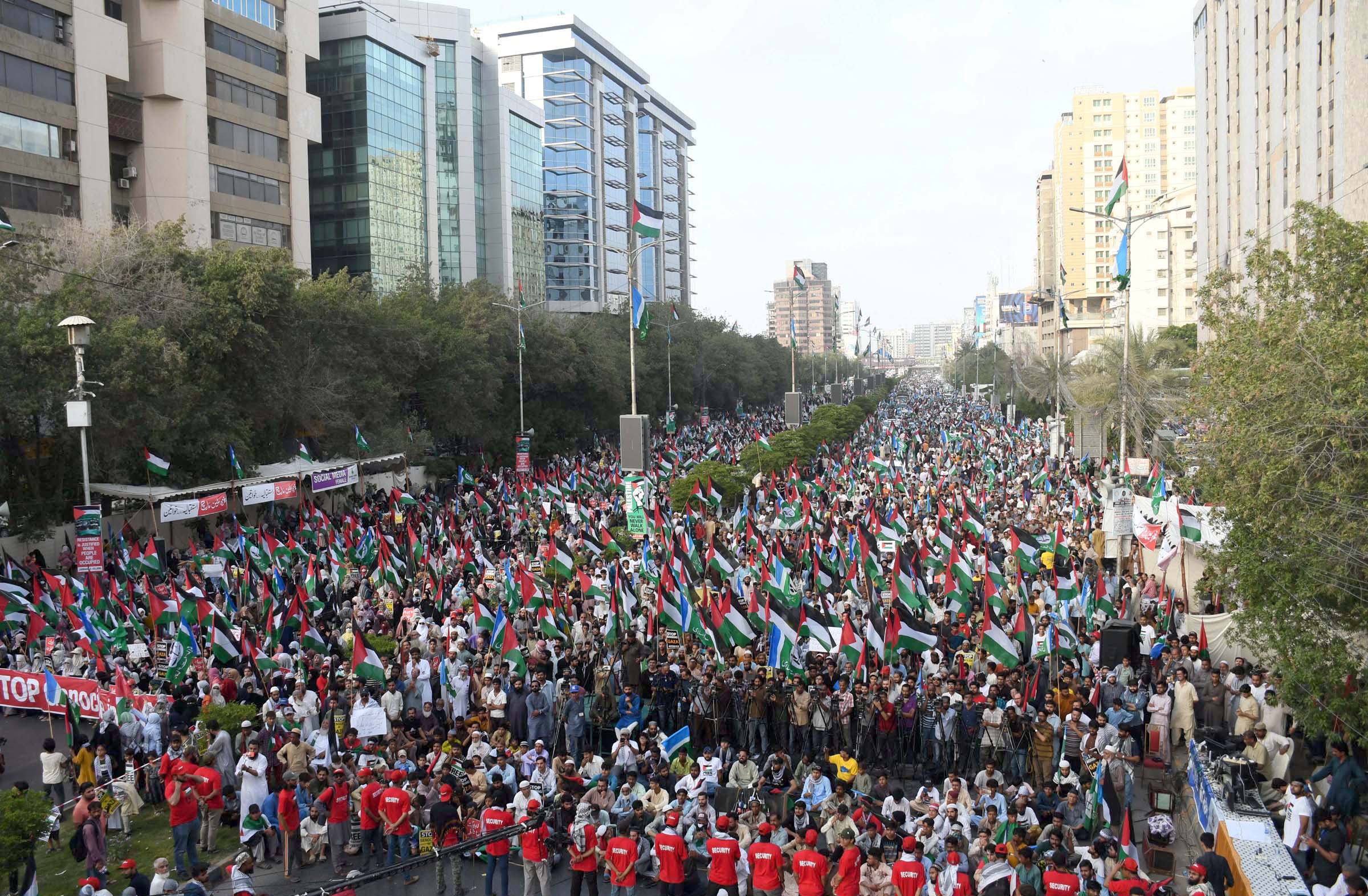 کراچی میں شارع فیصل پر نرسری کے مقام پر غزہ ملین مارچ ہوا جس میں مجلس وحدت مسلمین (ایم ڈبلیو ایم) رہنماوں، اقلیتی نمائندگان، سول سوسائٹی سمیت مختلف شعبوں سے تعلق رکھنے والے افراد نے اہل فلسطین اور تحریک مزاحمت حماس سے اظہار یکجہتی کیا۔