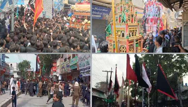 نواسہ رسولؐ حضرت امام حسین رضی اللہ تعالیٰ عنہ اور ان کے جانثاروں کی عظیم قربانی کی یاد میں آج ملک بھر میں شبیہِ علم، تابوت اور ذوالجناح کے جلوس نکالے گئے۔
