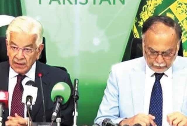 اسلام آباد میں پریس کانفرنس کرتے ہوئے وفاقی وزرا احسن اقبال اور خواجہ آصف نے کہا کہ چیف جسٹس کے قتل کے فتوے دینے والوں کے خلاف سخت کارروائی کی جائے گی اور کسی کو اس طرح کی شرانگیزی کی اجازت نہیں دی جائے گی۔