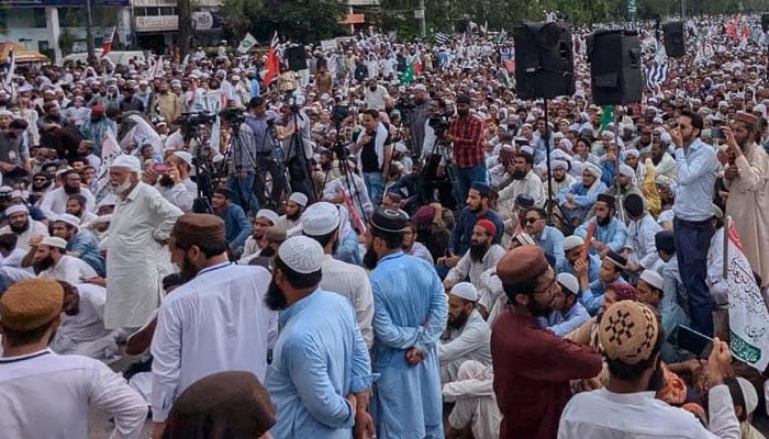 اسلام آباد: ڈی چوک پر مذہبی جماعتوں کا احتجاج، کارکن رکاوٹیں توڑ کر ریڈ زون میں داخل