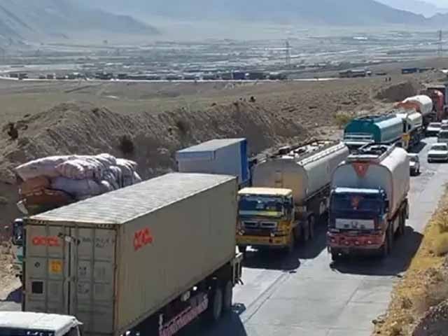 چاغی میں پاک ایران بارڈر سے تیل لانے والی گاڑی مالکان نے انٹری کارڈ نہ ملنے پر شاہراہ کو بلاک کر دیا ہے۔