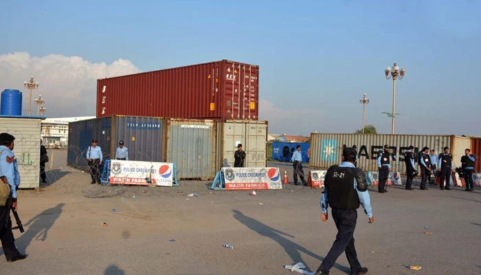 پی ٹی آئی کا جلسہ، اسلام آباد کے داخلی راستے کنٹینرز رکھ کر بند کر دیئے گئے