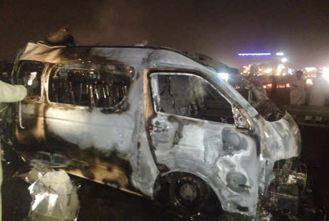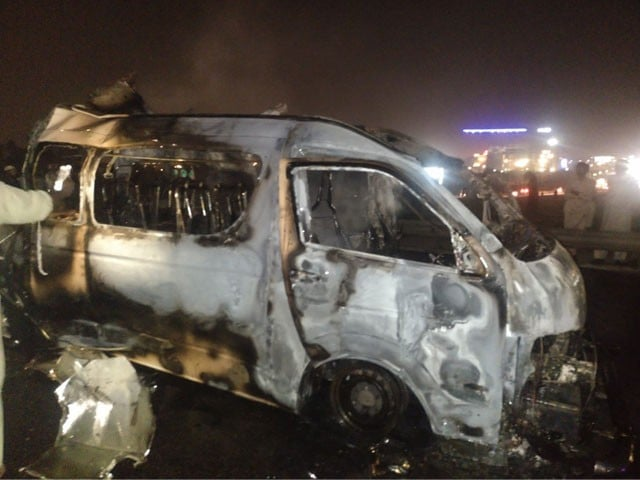 حادثے کی اطلاع ملتے ہی موٹروے پولیس موقع پر پہنچ گئی اور ریسکیو آپریشن شروع کردیا، ابتدائی معلومات کے مطابق آتشزدگی کا واقعہ وین میں موجود گیس سلنڈر پھٹنے کی وجہ سے پیش آیا۔