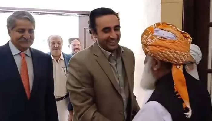 چیئرمین پاکستان پیپلز پارٹی بلاول بھٹو زرداری رات گئے مولانا فضل الرحمان سے ملاقات کیلئے ان کی رہائش گاہ پہنچے تھے۔