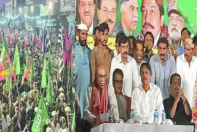 سابق وزیر اعلی سندھ لیاقت جتوئی نے خطاب کرتے ہوئے کہا کہ بدین کے عوام نے جبری منظور کرائے جانے والے غیر قانونی قانون سازی کو مسترد کر دیا ہے، پیپلز پارٹی اب زرداری پارٹی ہے اورسرکاری فنڈ اور وسائل سے ناکام جلسہ پر جشن منا رہی ہے، جی ڈی اے مرزا گروپ کا جلسہ عوامی جلسہ ہے، پیرصاحب پگاڑا اور جی ڈی اے کی قیادت سندھ میں متبادل ہے، سندھ میں زرداری حکومت نے ظلم کی انتہا کر دی ہے۔ نیشنل پیپلزپارٹی کے رہنما مسرور جتوئی نے خطاب کرتے ہوئے کہا کہ دریائے سندھ کے پانی پر ڈاکہ سندھ کی تباہی ہے، پانی میں کٹوتی سے سندھ میں زرعی معشیت تباہ ہو گئی، سندھ کو اگرپانی نہیں ملا توپھر غربت اور بے روزگاری میں اضافہ ہو گا۔