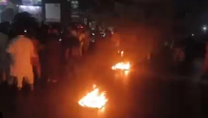 مشتعل مظاہرین نے ایک موٹر سائیکل کو بھی آگ لگادی۔ احتجاج کے باعث ٹریفک کی روانی متاثر ہوئی اور گاڑیوں کی قطاریں لگ گئیں۔