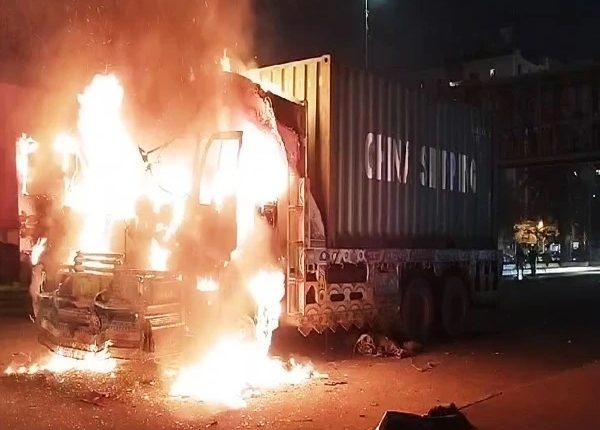 اس موقع پر مشتعل مظاہرین نے ٹرک کو آگ لگا دی جس کے باعث شارع پاکستان پر ٹریفک کی روانی شدید متاثر ہوگئی، واقعہ کی اطلاع ملتے ہی جوہر آباد پولیس موقع پر پہنچ گئی اور فوری طور پر فائر بریگیڈ کو طلب کرلیا۔