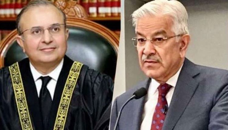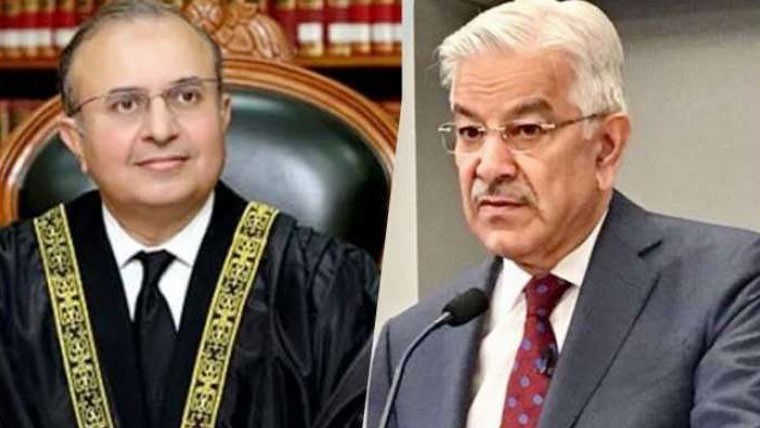 وزیر دفاع خواجہ آصف نے سپریم کورٹ کے سیئنر ترین جج منصور علی شاہ کے خط پر ردعمل میں کہا ہے کہ یہ سلیکٹیو سینس آف جسٹس آپ کے مقام کو زیب نہیں دیتا۔