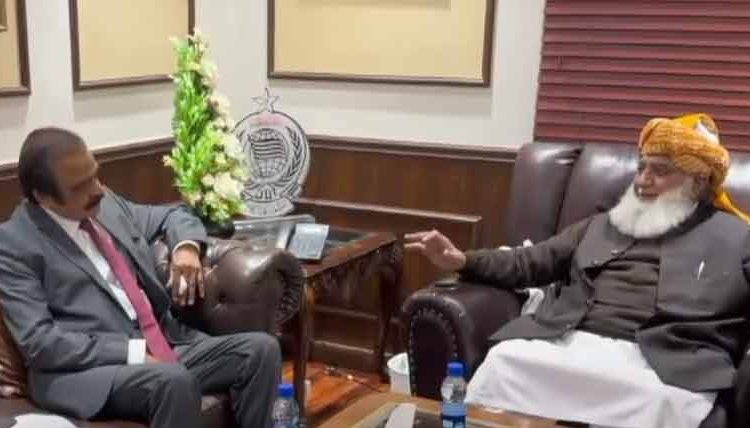 وزیر اعظم کے مشیر برائے سیاسی امور رانا ثنا اللہ نے جے یو آئی کے سربراہ مولانا فضل الرحمان سے ملاقات کی۔