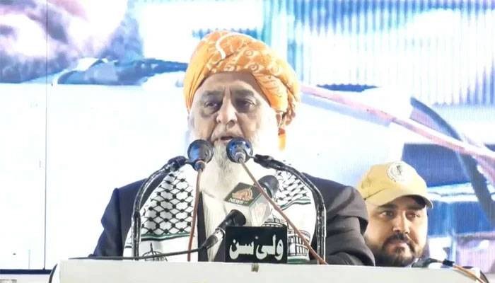 پشاور میں اسرائیل مردہ باد کانفرس سے خطاب میں مولانا فضل الرحمان کا کہناتھاکہ فلسطینیوں کے شانہ بشانہ کھڑے ہیں، جنگ عظیم اول میں مغربی دنیا نے کروڑوں انسانوں کا قتل عام کیا، افغانستان اور عرب دنیا کے مسلمانوں کا قتل عام کیا گیا، امریکا اور مغربی دنیا انسانیت کےقاتل ہیں، ہم نے اس خطے میں انسانیت کو شعور دیا ہے۔