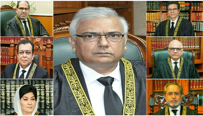 جسٹس امین الدین کی سربراہی میں سپریم کورٹ کے 7 رکنی آئینی بینچ نے 8 فروری 2024 کے عام انتخابات میں دھاندلی کے سابق وزیراعظم عمران خان کی درخواست پر سماعت کی۔