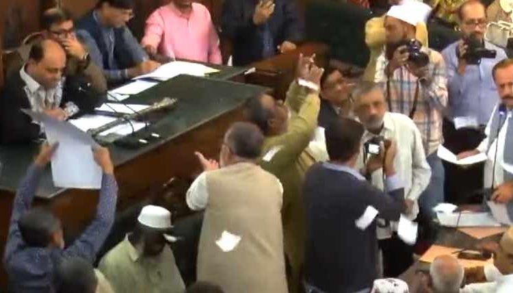 کراچی سٹی کونسل کا اجلاس مچھلی منڈی میں تبدیل، شدید ہنگامہ آرائی اور شور شرابہ