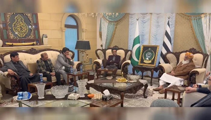 ڈاکٹر خالد مقبول صدیقی کی سربراہی میں گورنر سندھ کامران ٹیسوری، ڈاکٹر فاروق ستار اور سید امین الحق پر مشتمل ایم کیو ایم کے وفد نے اسلام آباد میں مولانا فضل الرحمان کی رہائش گاہ پہنچ کر ان سے ملاقات کی، وفد میں شامل تھے۔