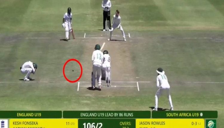 ہوا کچھ یوں کے انگلینڈ کے بیٹر آریان ساونت نے جنوبی افریقی بولر جیسن رولیس کی گیند پر سوئپ شاٹ کھیلا لیکن گیند شارٹ لیگ فیلڈر جوریچ وین کے ہیلمٹ سے ٹکرا کر وکٹوں پر آلگی۔
