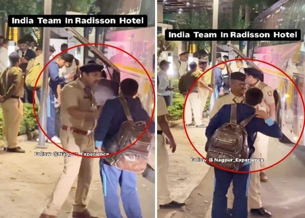 سوشل میڈیا پر وائرل ہونے والی ایک ویڈیو میں دیکھا جاسکتا ہے کہ بھارتی کرکٹ ٹیم کے معاون عملے میں شامل تھرو اسپیشلسٹ راگھو کو سیکیورٹی پر معمور بھارتی پولیس اہلکاروں نے ٹیم ہوٹل میں جانے سے روک دیا، جس کے بعد انہوں نے بتایا کہ وہ ٹیم کے رکن ہے تو انہیں جانے کی اجازت دی گئی۔