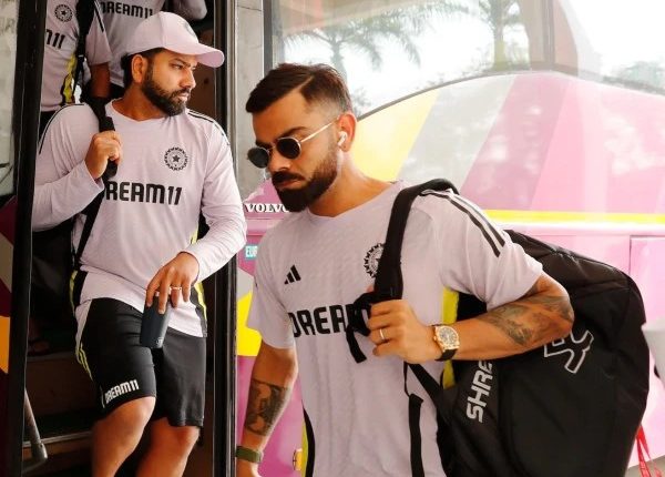 روہت شرما سمیت دیگر کھلاڑیوں کو ٹیم بس میں کے ایل راہول انتظار کرتے ہوئے اور سپورٹ اسٹاف ممبر کے ساتھ بات کرتے ہوئے دیکھا گیا۔