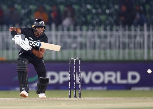 کیویز کی جانب سے رچن رویندرا 112 رنز بنا کر نمایاں رہے۔ ٹام لیتھم 55، ڈیوون کانوے 30، کین ولیمسن 5 اور ول ینگ 0 رن بنا کر پویلین لوٹے۔