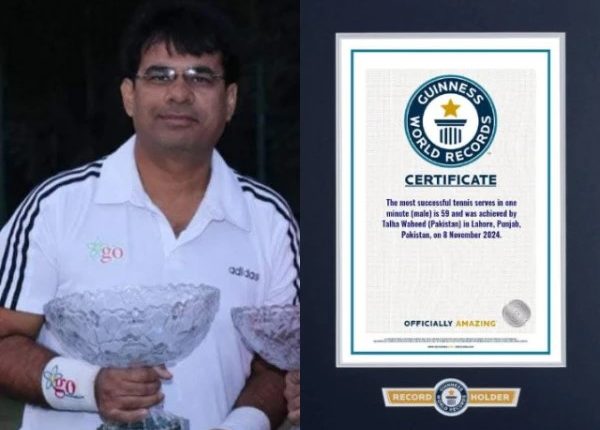 پاکستان کا سینیئر ٹینس کھلاڑی طلحہ وحید نے شاندار کارنامہ سر انجام دیتے ہوئے گنیز ورلڈ ریکارڈ میں اپنا نام درج کروا لیا ہے-