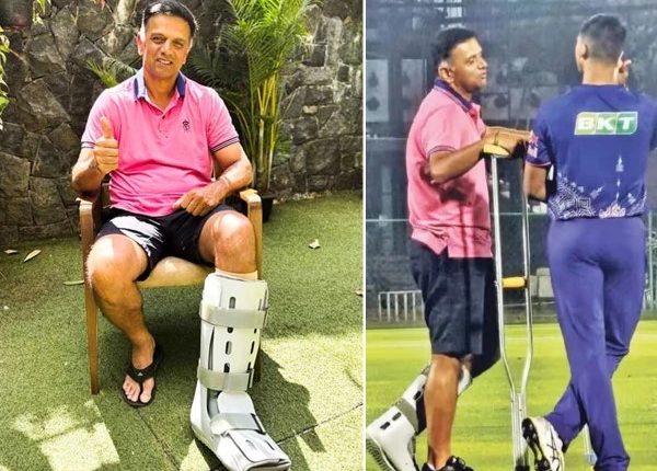 بھارتی کرکٹ ٹیم کے سابق ہیڈکوچ راہول ڈریوڈ انجری کا شکار ہوکر بیساکھیوں پر آگئے۔