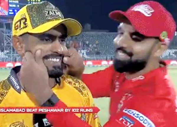 میچ کے دوران ٹاس کے وقت پشاور زلمی کے کپتان بابراعظم نہایتی سنجیدہ موڈ میں تھے تاہم اسلا آباد یونائیٹڈ کے کپتان شاداب خان نے انکے گال پکڑے اور مسکرانے کو کہا! جس پر پریزینٹر نے سوال کیا کہ اس حرکت پر شاداب کو کیا جواب دینا چاہیں گے؟ جس پر بابر کا کہنا تھا کہ دیں گے انشا اللہ۔