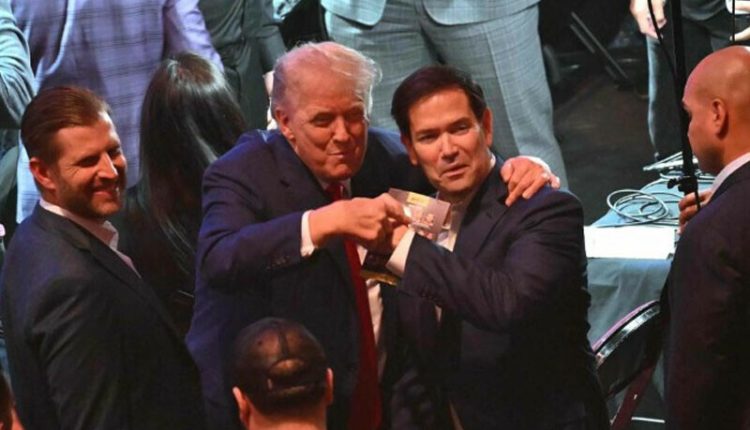 غیر ملکی خبررساں ادارے کی رپورٹ کے مطابق امریکی صدر ڈونلڈ ٹرمپ الٹی میٹ فائٹنگ چیمپین شپ (یو ایف سی ) بینٹم ویٹ مقابلہ دیکھنے نیو جرسی کے پروڈینشیل سینٹر پہنچ گئے، صدرڈونلڈ ٹرمپ کے ہمراہ یوایس سیکریٹری اسٹیٹ مارکو روبیو بھی موجود تھے۔ڈونلڈ ٹرمپ کے ایرینا پہنچنے پر شاندار استقبال کیا گیا، یو ایف سی کے صدر ڈانا وائٹ نے گرم جوشی سے امریکی صدر کو خوش آمدید کہا۔