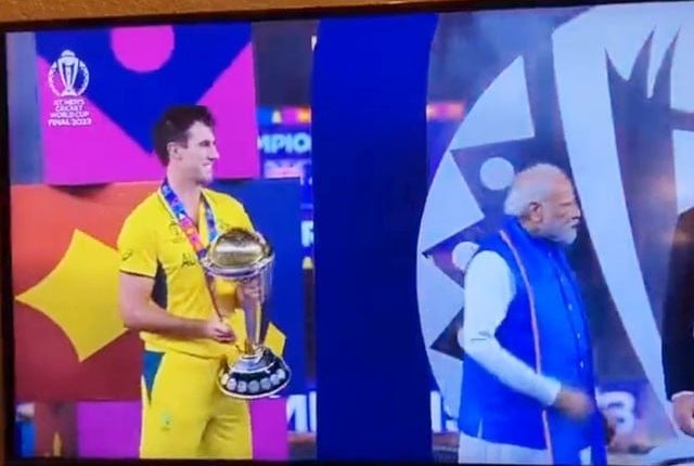 ورلڈ کپ کے فائنل کے اختتام پر بھارتی وزیراعظم نریندر مودی فاتح ٹیم آسٹریلیا کے کپتان پیٹ کمنز کو ٹرافی دینے آئے۔ مودی نے آسٹریلیا کے کپتان کو جیسے تیسے ٹرافی پکڑائی اور بغیر ہاتھ ملائے منہ موڑ کر روانہ ہوگئے۔