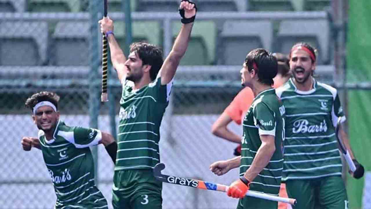 نیشنز ہاکی کپ میں پاکستان اور ملائیشیا کے درمیان میچ چار چار گول سے برابر ہوگیا، میچ کے آخری منٹ میں پاکستان کو پنالٹی اسٹروک ملا جس پر ابوبکر نے گول کرکے مقابلہ برابر کیا۔