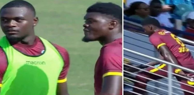 انگلینڈ اور ویسٹ انڈیز کے درمیان کرکٹ میچ کے دوران فیلڈنگ میں ردوبدل کے معاملے پر فاسٹ بولر کپتان سے ناراض ہوکر میدان چھوڑ گیا۔