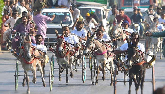 چیمپئنزگدھا گاڑی ریس سرتاج نامی گدھے نے جیت لی