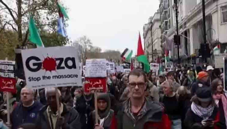برطانوی شہری احتجاج میں فلسطین سے اظہار یکجہتی اور اسرائیلی بربریت کے خلاف اپنی آواز بلند کرنا چاہتے ہیں۔