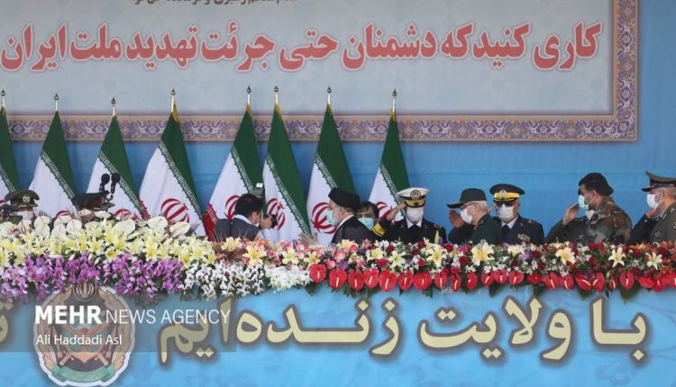 صدر ابراہیم رئیسی نے یوم مسلح افواج کی مناسبت سے فوجی پریڈ سے خطاب میں شہداء، جانبازوں اور مجاہدین کو خراج تحسین پیش کرتے ہوئے کہا کہ حضرت امام خمینی (رہ) نے حکمت عملی کے تحت اس دن کو مسلح افواج کے دن سے موسوم کیا ، ہماری فوج خدا کی طرفدار، عوام دوست ، بابصیرت اور انقلابی جذبے سے سرشار ہے۔