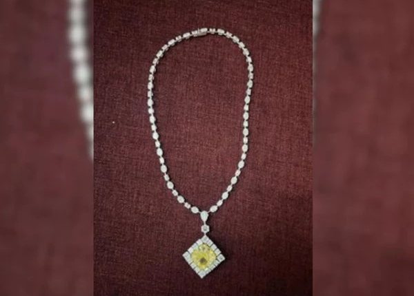 بھارتی کسٹم حکام کا کہنا ہے کہ اس ہار کی چین پر بیضوی اور مستطیل شکل کے ہیرے جڑے ہوئے ہیں جب کہ پینڈنٹ میں پیلے رنگ کا ہیرا جڑا ہے۔