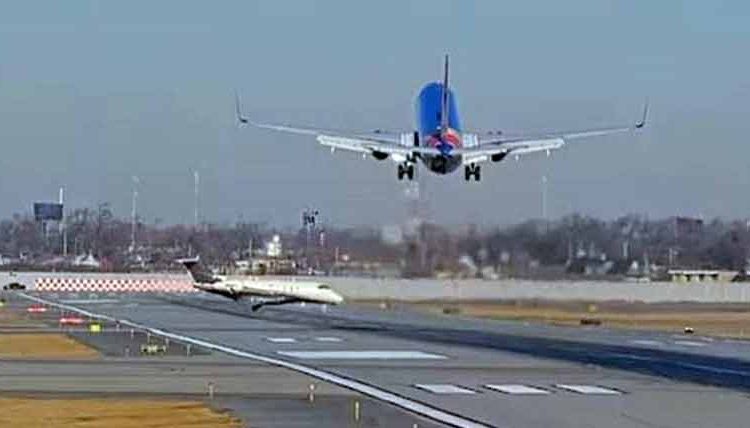 امریکا میں ایک اور مسافر طیارہ بڑے حادثے سے بال بال بچ گیا، لینڈنگ کے دوران نجی چھوٹا طیارہ رن وے پر اچانک آگیا، پائلٹ نے طیارے کو چھوٹے جہاز سے ٹکرانے سے بچانے کیلئے لینڈنگ روک دی، عین وقت پر جہاز کو دوبارہ فضا میں بلند کر دیا۔