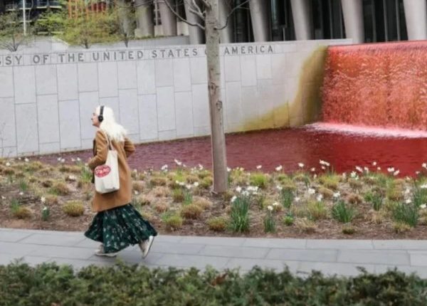 برطانیہ کے دارالحکومت لندن میں امریکی سفارتخانے کے باہر اسرائیل کے مظالم کے خلاف ایک منفرد انداز میں احتجاج ریکارڈ کرایا گیا، جہاں مظاہرین نے ایک تالاب یا فوارے میں سرخ رنگ ڈال کر اسے خون کے پانی میں بدل دیا۔