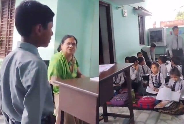 سوشل میڈیا پر وائرل ویڈیو میں دیکھا جا سکتا ہے کہ ہندو بچے باری باری اپنی جگہ سے اٹھ کر آ رہے ہیں اور ٹیچر کے پاس کھڑے روتے ہوئے مسلمان بچے کو تھپڑ مار رہے ہیں۔