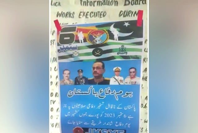 مقبوضہ کشمیر میں یومِ دفاعِ پاکستان کی مناسبت سے آرمی چیف کے پوسٹر چسپاں