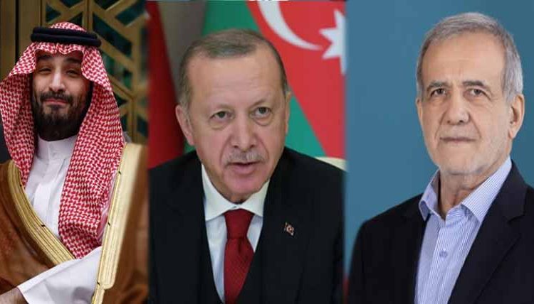 ترک صدر رجب طیب اردوان نے ایرانی ہم منصب مسعود پزشکیان اور سعودی ولی عہد سے ٹیلیفونک رابطہ کیا ہے۔ ترک صدر نے ایران اور سعودی عرب کی اعلیٰ سیاسی قیادت سے رابطے میں کہا کہ نیتن یاہو حکومت علاقائی استحکام کےلیے بڑا خطرہ ہے۔
