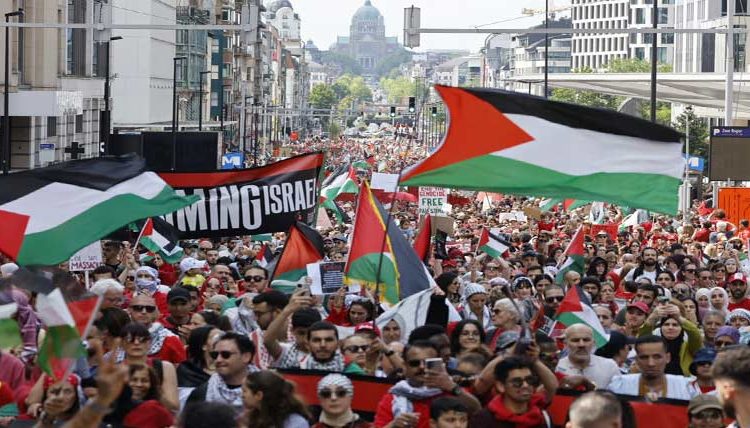 یورپی دارالحکومت برسلز میں 130 تنظیموں نے فلسطینی عوام کے حق اور اسرائیل کی مذمت میں ایک بڑا احتجاجی مظاہرہ کیا جس میں بوڑھوں، بچوں اور معذوروں سمیت ایک لاکھ سے زیادہ افراد نے شرکت کی۔منتظمین نے اس مظاہرے کو ریڈ لائن کا نام دیا تھا جس میں شرکاء سے اپیل کی گئی تھی کہ وہ لباس کا کچھ حصہ یا اپنے ساتھ کوئی سرخ رنگ کا کپڑا ضرور لے کر آئیں۔