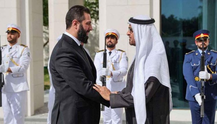 شام کے صدر احمد الشراع نے متحدہ عرب امارات کے سرکاری دورہ کے دوران متحدہ عرب امارات کے صدر شیخ محمد بن زاید آل نہیان سے ابوظہبی کے قصر الشاطی میں ملاقات کی۔عالمی میڈیا کی رپورٹ کے مطابق ملاقات میں دونوں ممالک کے مابین دوطرفہ تعلقات خاص طور پرترقیاتی و اقتصادی شعبوں میں اشتراکِ عمل کو بڑھانے کے امکانات پر تفصیلی طورپر تبادلہ خیال کیا گیا۔