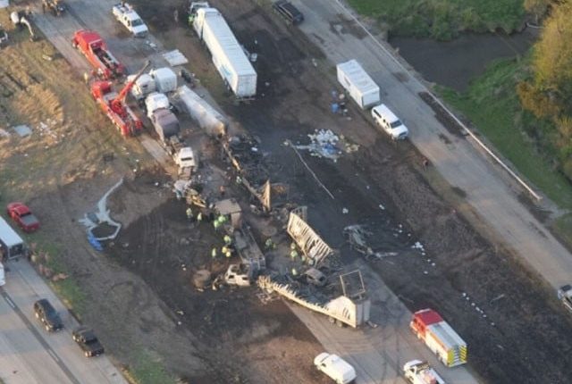امریکی ریاست الینوائے میں دو ٹرکوں کے درمیان تصادم ہوا،مقامی کے آبادی کے کئی افراد کو ان علامتوں کے ظاہر ہونے پر اسپتال منتقل کیا گیا ۔