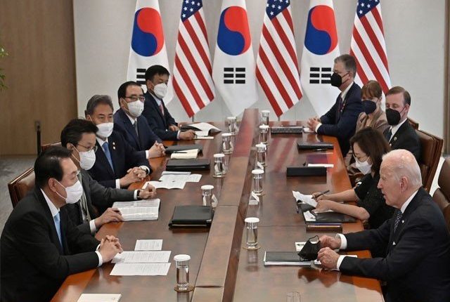 امریکی صدر نے اپنے جنوبی کوریائی ہم منصب یون سوک یول سے دوبدو ملاقات کی۔ دونوں رہنماؤں نے حریف ملک شمالی کوریا کے جوہری ہتھیاروں کے تجربات اور ممکنہ جوہری میزائل تجربے پر تشویش کا اظہار کیا۔