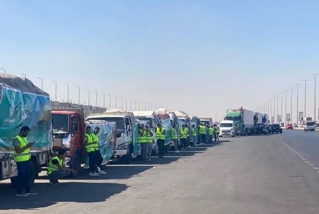 تصاویر اور ویڈیوز منظر عام پر آگئیں جن میں مصر اور ترکی سے لائے گئے امدادی سامان سے بھرے ٹرکس اور ایمبولینسز کی طویل قطار دکھائی دے رہی ہے جو آریش شہر میں فرح کراسنگ پر سرحد کھلنے کا انتظار کر رہی ہے۔